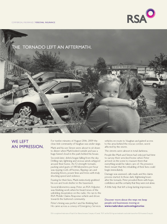 I created a variety of trade print ads and a website video for RSA Insurance. The creative set the global brand standard and was picked up in Europe and Asia Pacific markets.